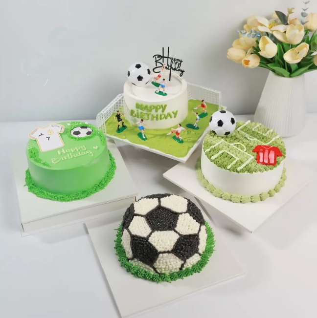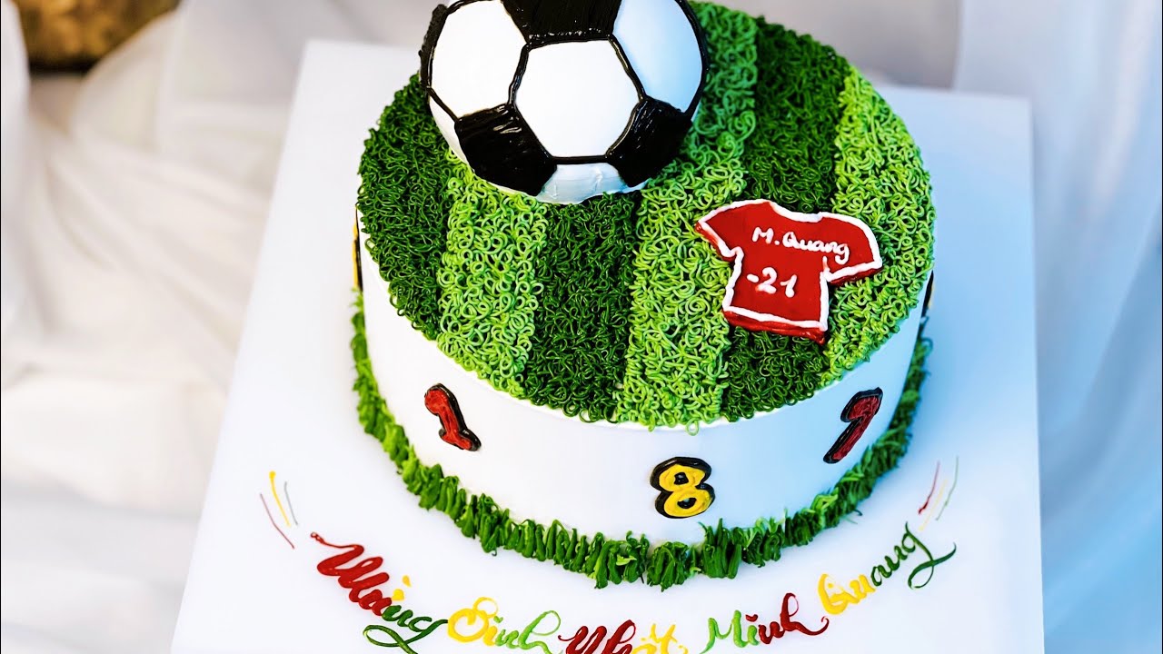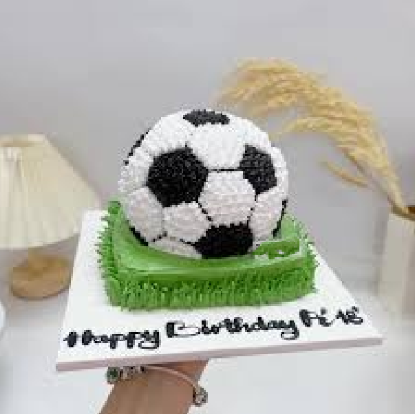 Đây cũng là một trong những kiểu bánh sinh nhật hình quả bóng được ưa chuộng nhất hiện nay dành cho các bữa tiệc sinh nhật đông người. Bánh thường sử dụng tông xanh của cỏ làm màu chủ đạo với điểm nhấn là trái banh được thiết kế ngay trên mặt bánh. Ngoài ra, một số mẫu bánh còn có thêm các hình khung thành, số áo cầu thủ, hoặc các sticker để trang trí thêm xung quanh.