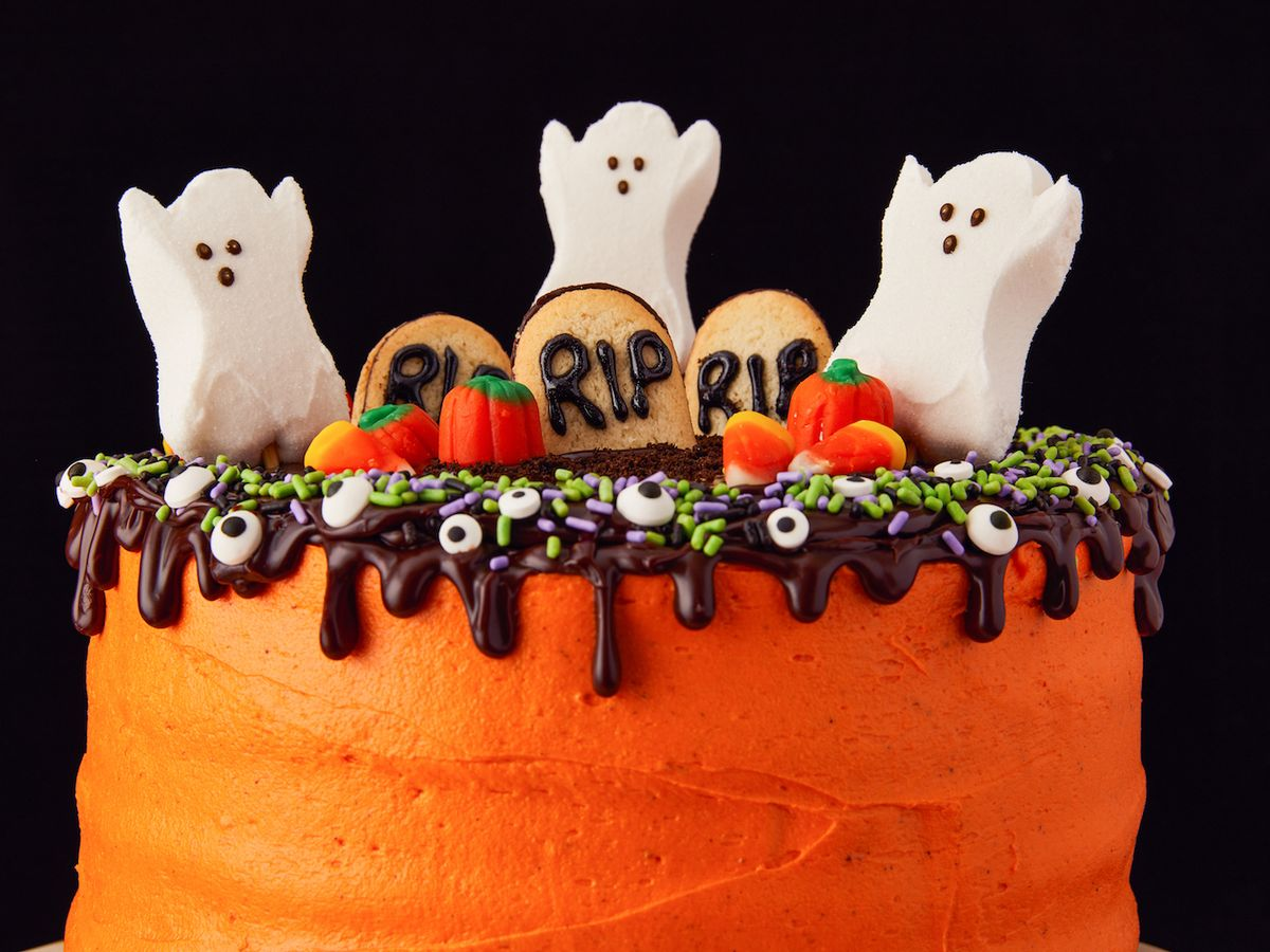 Bạn có thể chọn bánh Halloween với hình ma và bia mộ